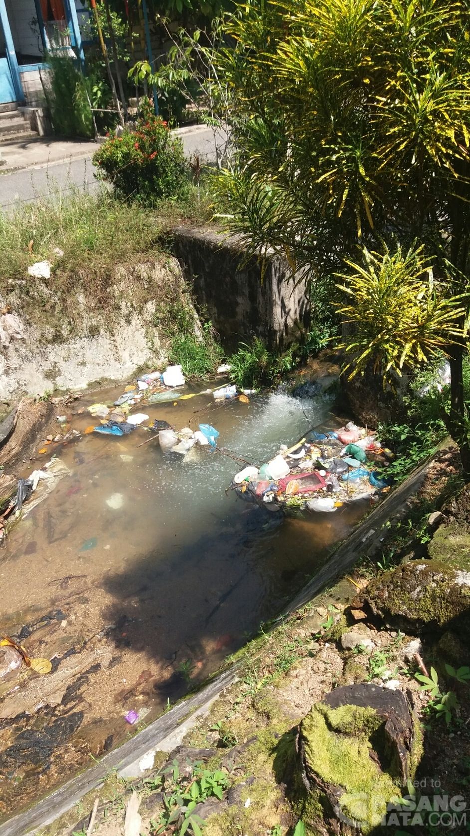 Aliran sungai di jalan D.I Panjaitan Kelurahan Hutabarangan ini tidak terawat, tampak genangan sampah warga yang dibuang di sungai ini. Sungguh egois sekali.