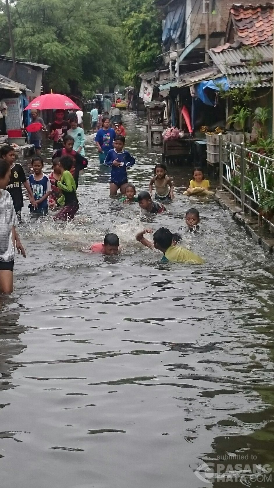 Kondisi terkini di kampung Menceng jalan jaya 25 banyak anak-anak berenang di kampung yg memang sedang banjir, tapi memang namanya juga anak-anak mereka belum tahu ini musibah atau kesenangan, namun diharapkan juga bagi para orang tua agar memonitor selalu anaknya agar kesehatannya terpantau dan semua aman-aman saja. bravo banjir jakarta.