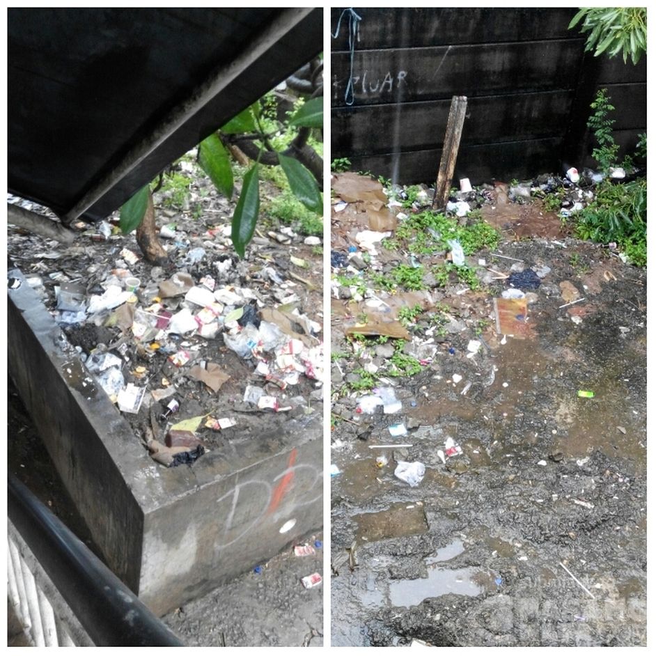 10.05 WIB Sampah bertebaran di sekitar akses keluar-masuk stasiun Sudirman, Jakarta, mengganggu pemandangan.