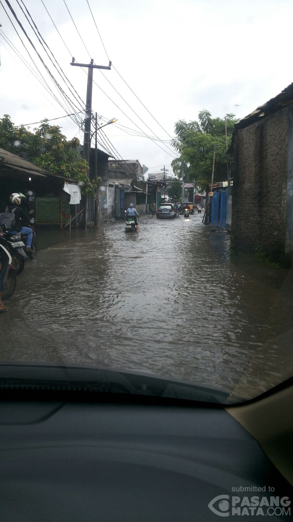 Banjir masih menutupi Jalan Prepedan Raya - Cengkareng . Hati-hati melintas karena cukup dalam dan sudah banyak kendaraan yang mogok menerobos banjir ini .