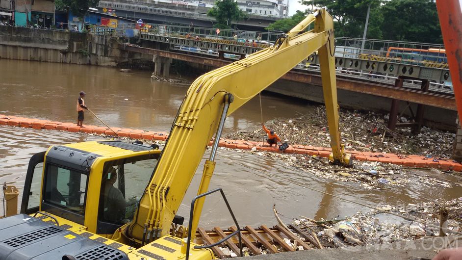Pengerukan Sampah Terlihat di Kali Depan Seasons City