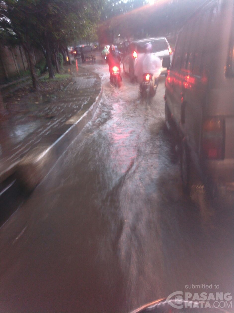 Hujan membuat Jalan Juanda Depok arah Cisalak tergenang air