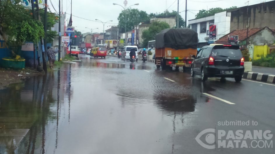 Sistem drainase buruk ruas jalan Cinangoh air hujan meluber ke jalanan