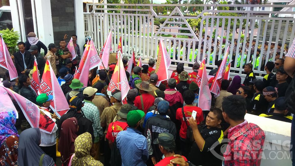 Ratusan petani 3 desa di kecamatan Teluk Jambe mendatangi kantor bupati Karawang terkait sengketa tanah