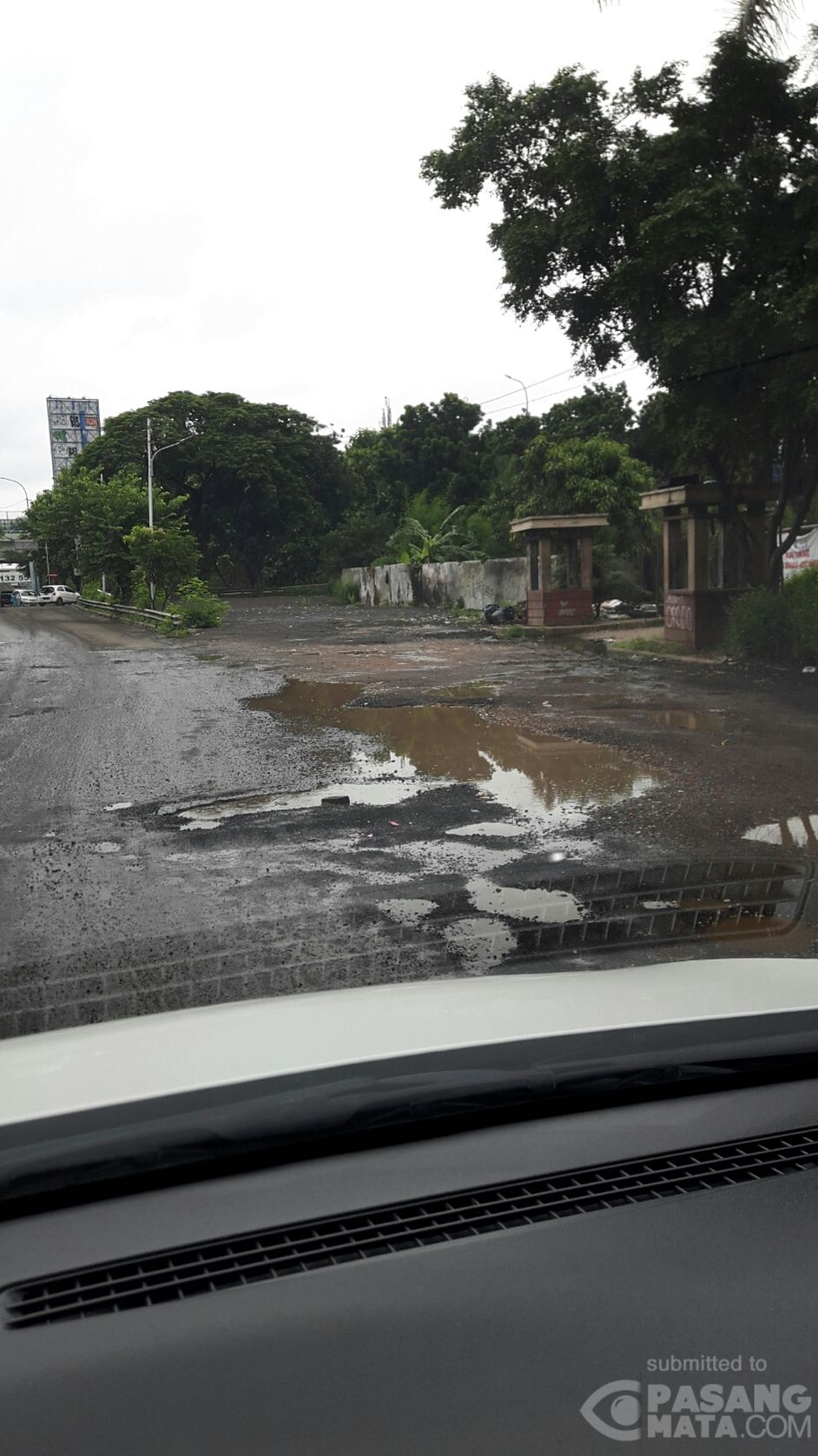 Jalan rusak di samping Tol Meruya depan sekolah Global