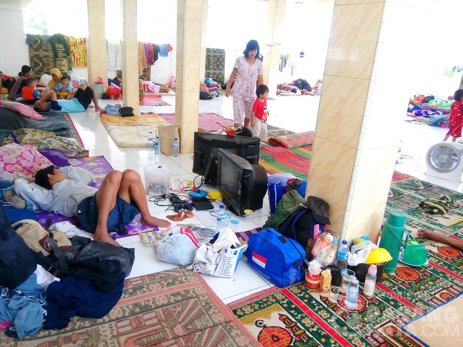 Inilah penampakan para pengungsi di masjid Annur perumahan KFT rw 011 Cengkareng Barat. Sekitar 50 kepala keluarga masih bertahan sejak rumah mereka terendam banjir, dari hari jumat 26/2 yang mencapai 1m. Sampai saat ini ketinggian air mulai berangsur surut hanya sekitar 50 cm dengan adanya sedotan 5 mesin pompa dari pemda setempat.