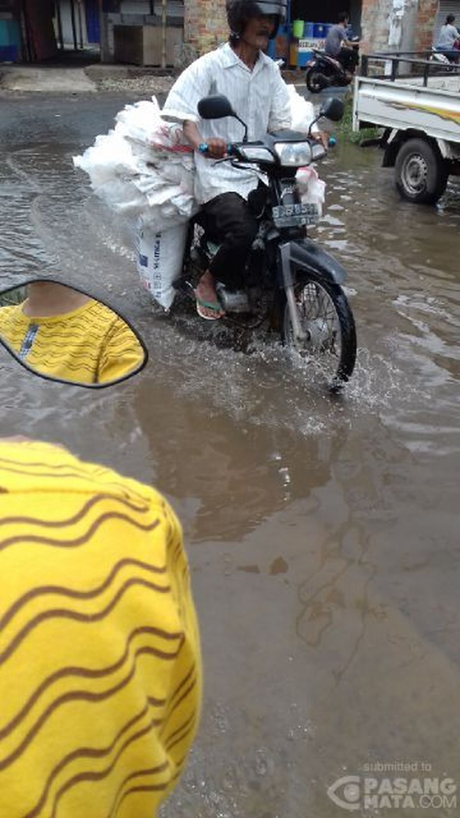 Jalan Raya Villa Bandara - Tangerang Dadap masih tergenang air .