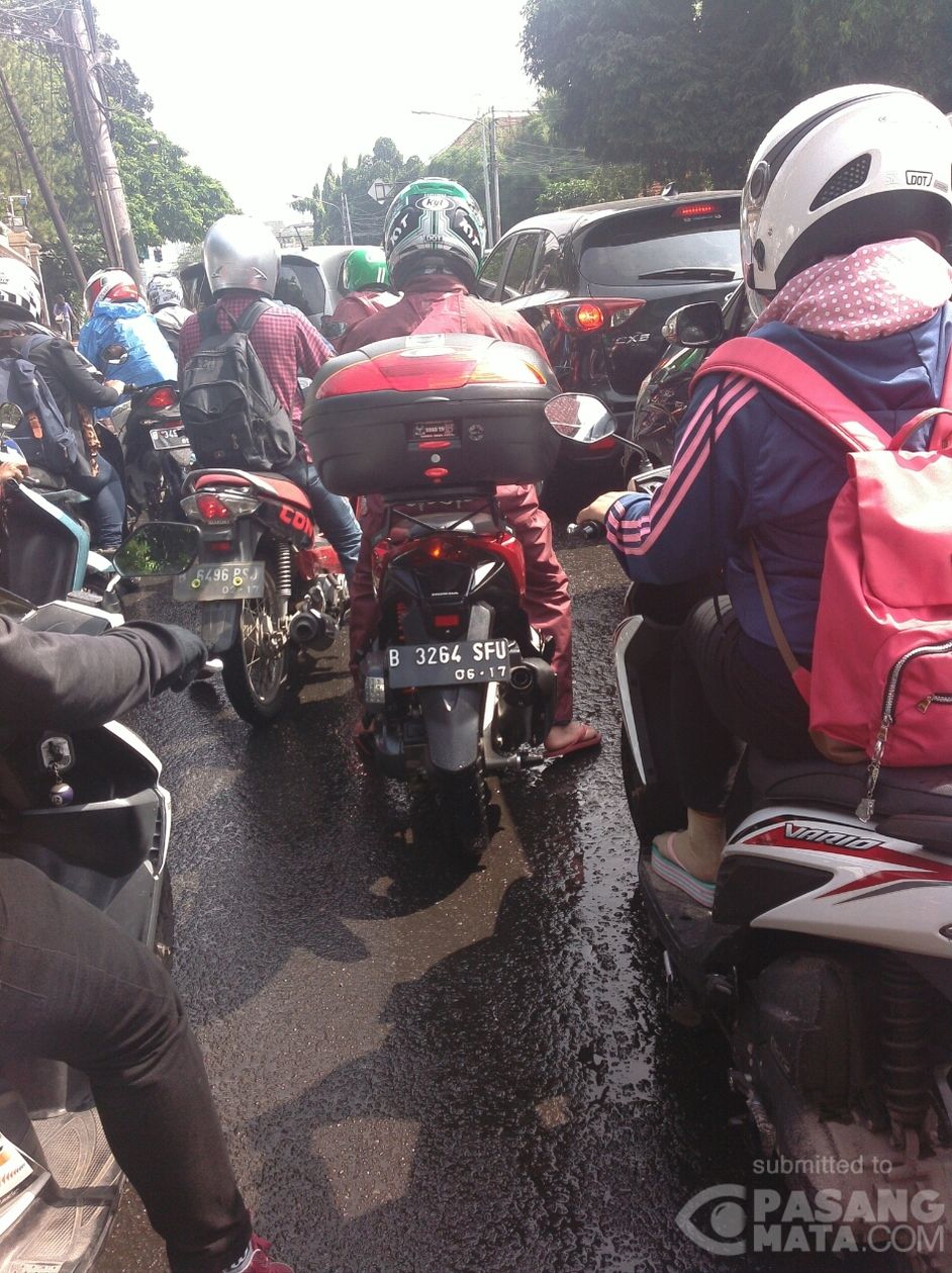 Arus lalu lintas di jl HOS Cokroaminoto menuju Menteng padat merayap.