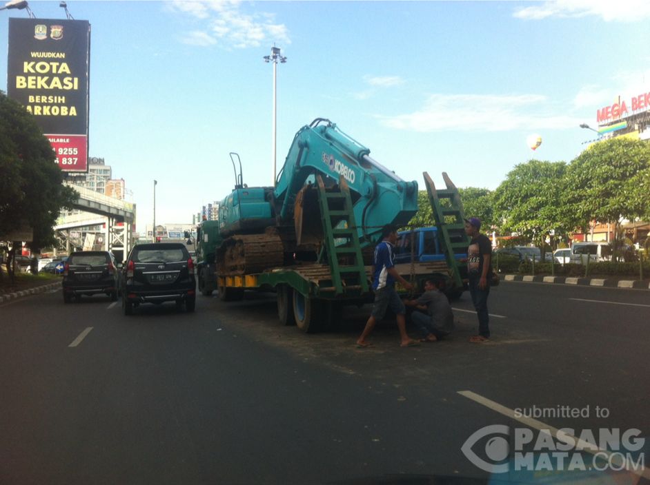 Truk trailer mogok di akses masuk GT Bekasi Barat dekat TL MM, macet jelang lokasi tsb