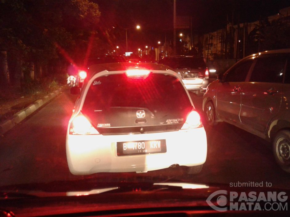 Kelakuan pengendara bila berada di lampu merah. Maju ke depan lewati batas garis agar bisa jalan duluan. Padahal sangat membahayakan. Lokasi lampu merah Kalibata - Pasar Minggu.