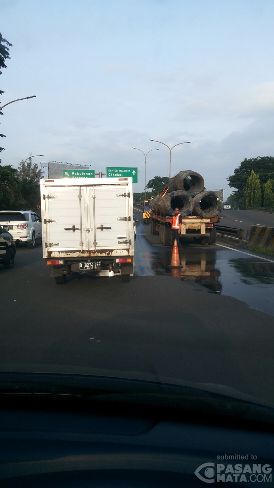 Truk Pengangkut Beton Mogok di Exit Tol Tangerang