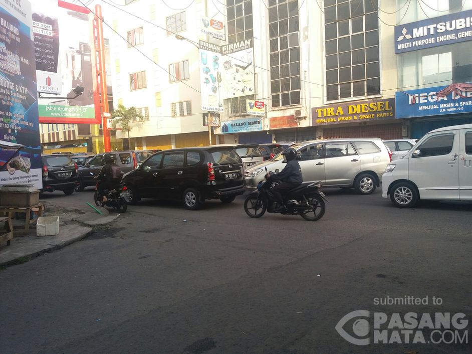 Lalin di Jl Pandu, Medan arah Sisingamangaraja terpantau padat merayap.
