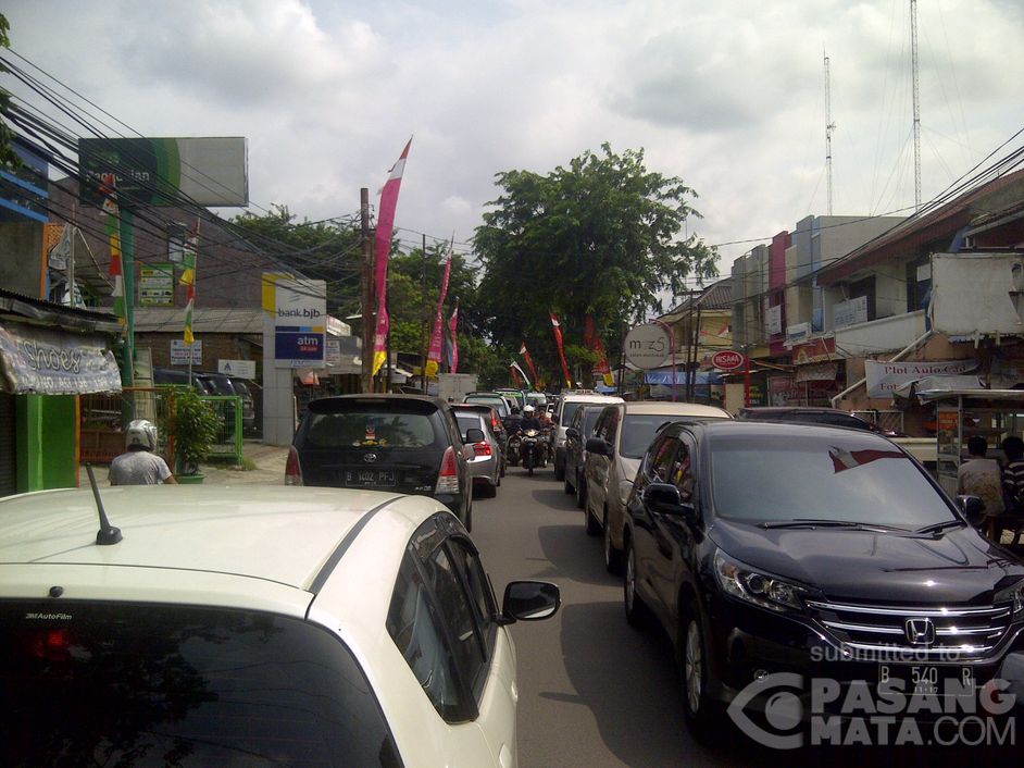 Jalan H. Naman padat merayap di kedua arah. Pondok Kelapa, Jakarta.