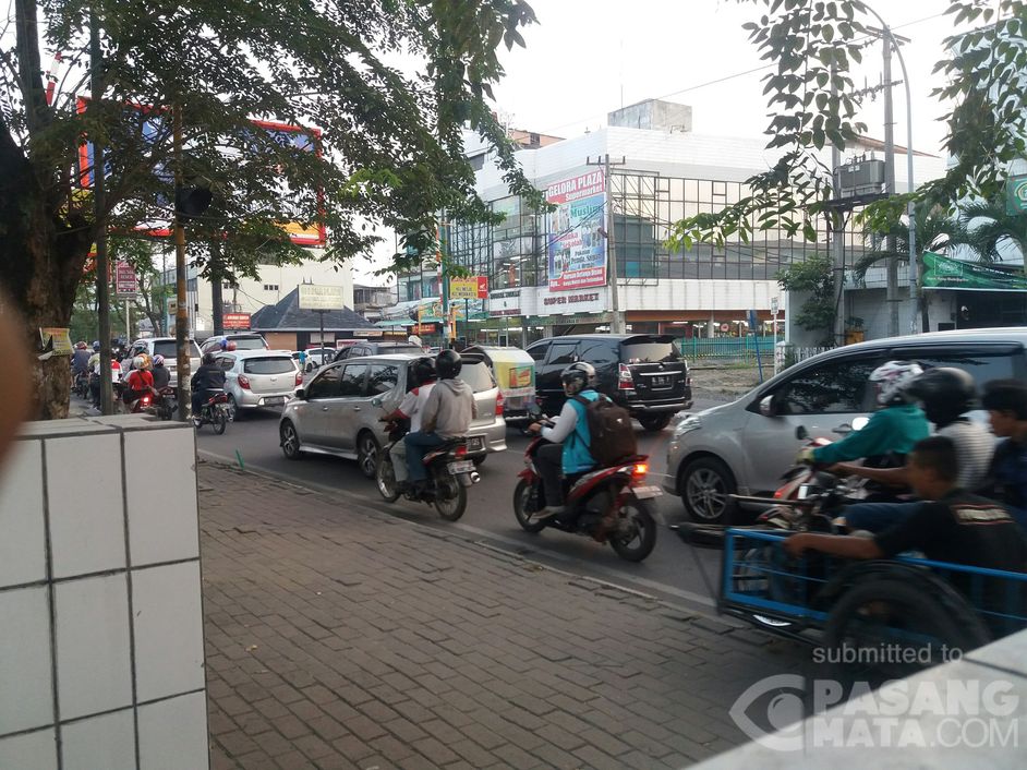 Penampakan Lalin di jalan Sisingamangaraja depan Tirtanadi terpantau padat dan macet.