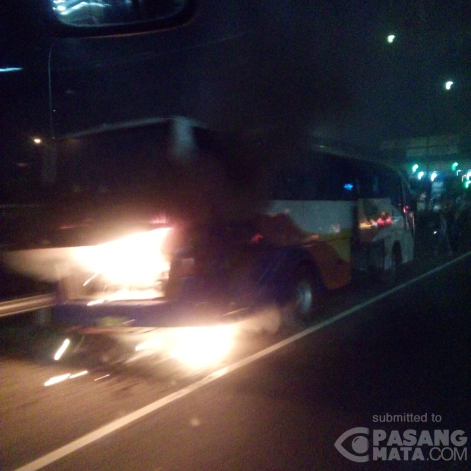 Kebakaran Bus dekat pintu Tol keluar arah Kampung Rambutan. lalu lintas masih lancar 04032016 || 19.18