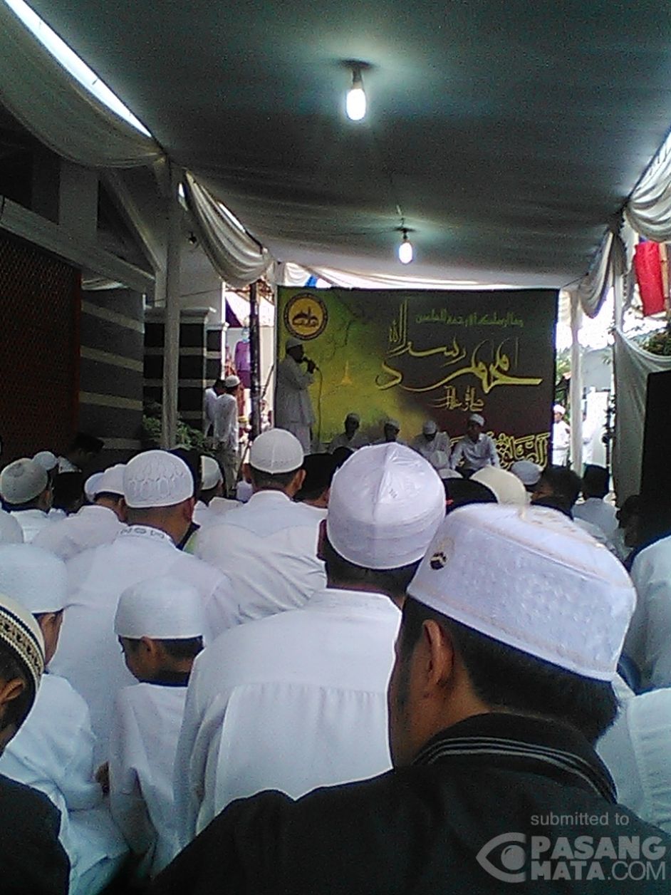 Peringatan maulid Nabi Muhammad SAW bersama KH Arifin Ilham di jalan Asofa Raya, Sukabumi Utara, Kebon Jeruk pagi ini.