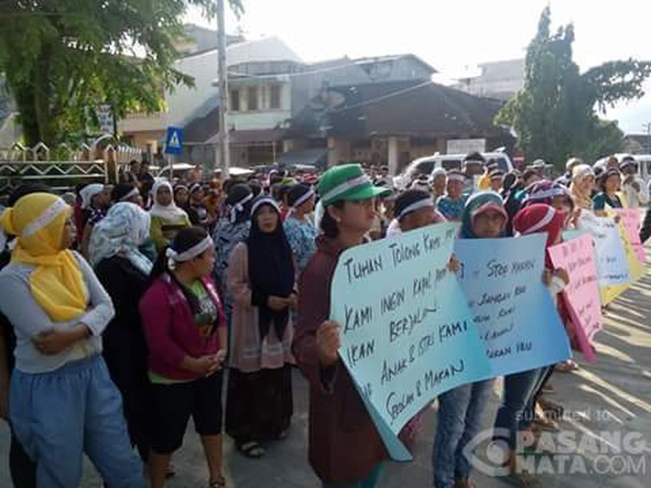Para demonstran terus berorasi menyampaikan permintaan pencabutan peraturan yang dibuat oleh menteri kelautan di depan Kantor DPRD Sibolga.