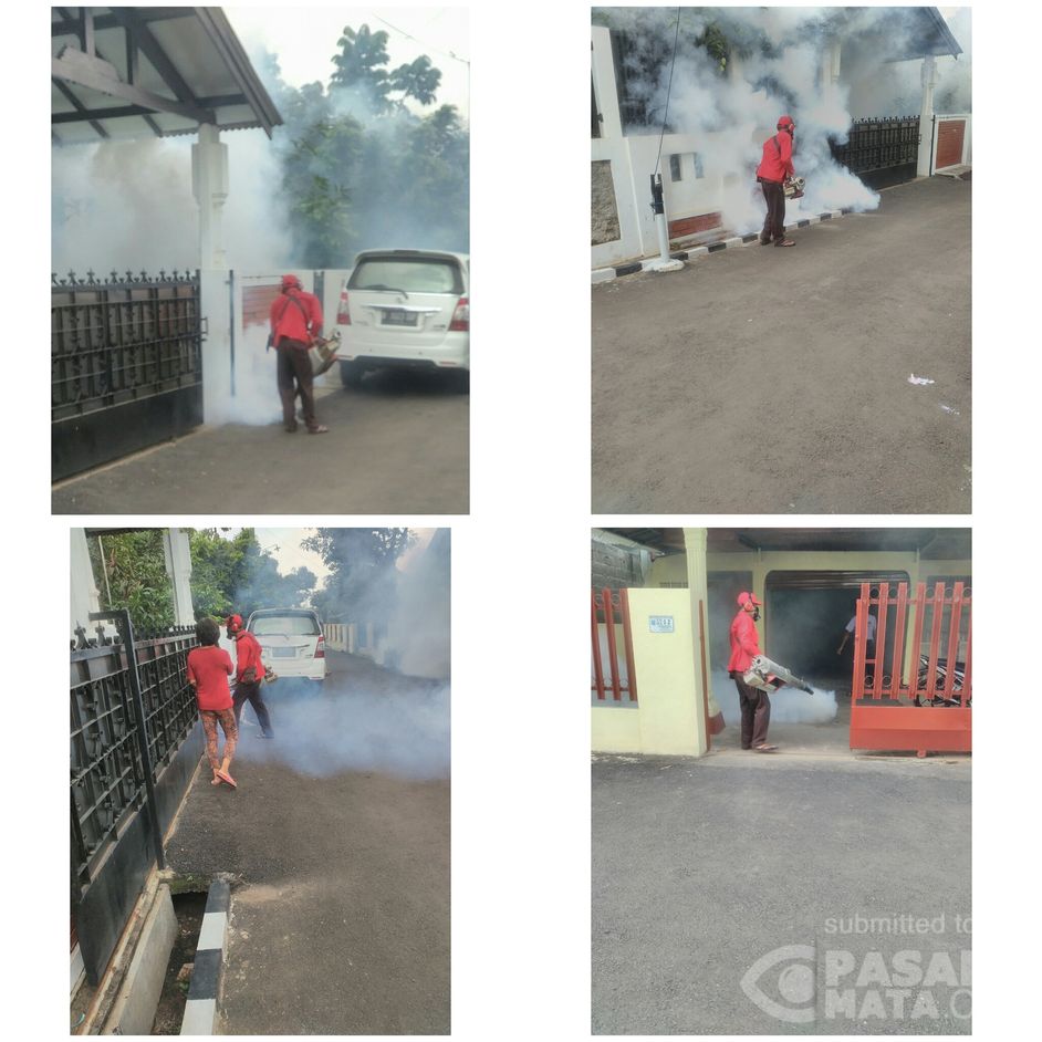 Sedang dilakukan fogging untuk mencegah DBD atau menghilangkan jentik-jentik nyamuk, di perumahan Mabad. Ciputat.