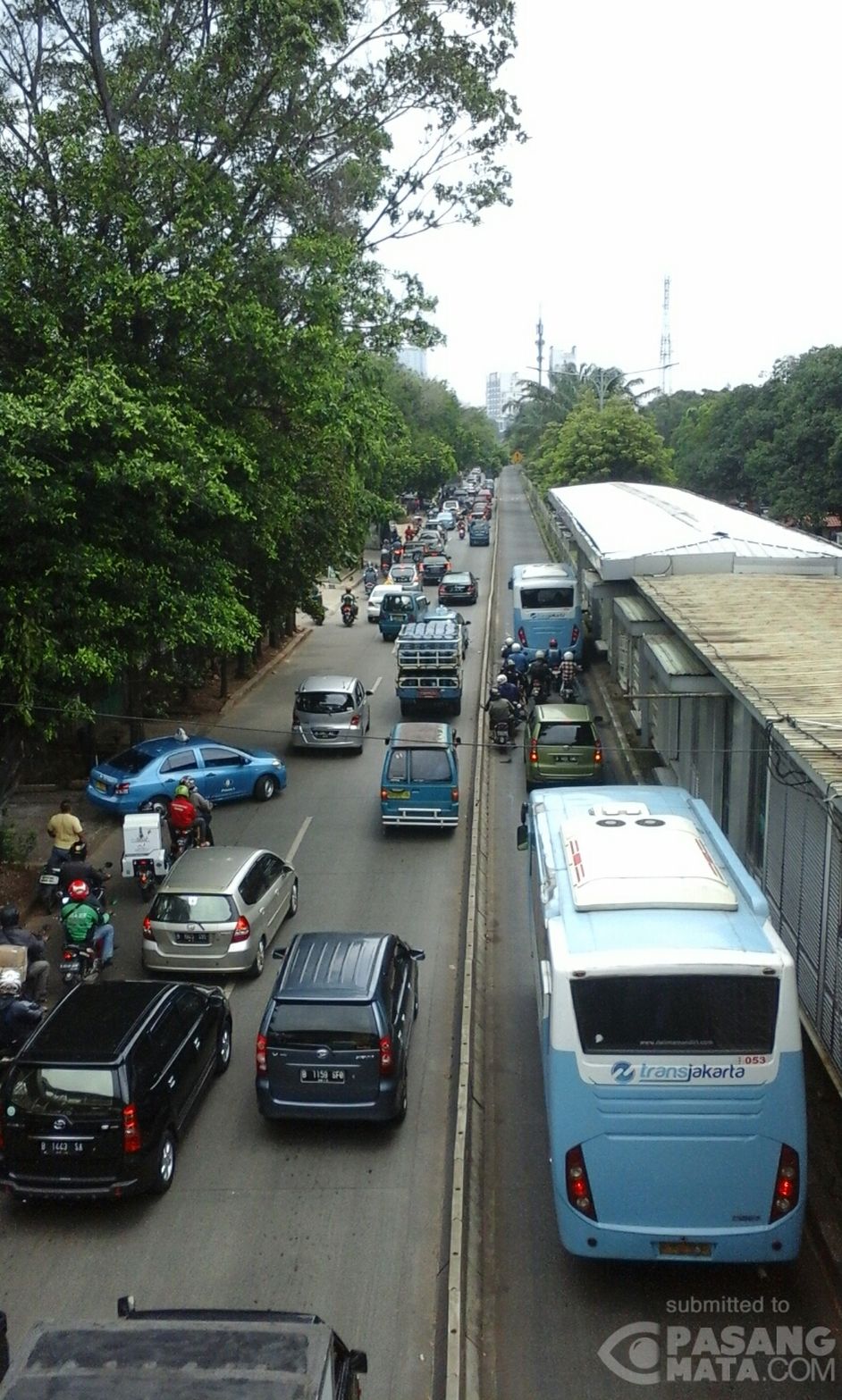 Lalu lintas jalan Taman Margasatwa Raya arah ke Buncit padat dan arah sebaliknya lancar, cuaca mendung