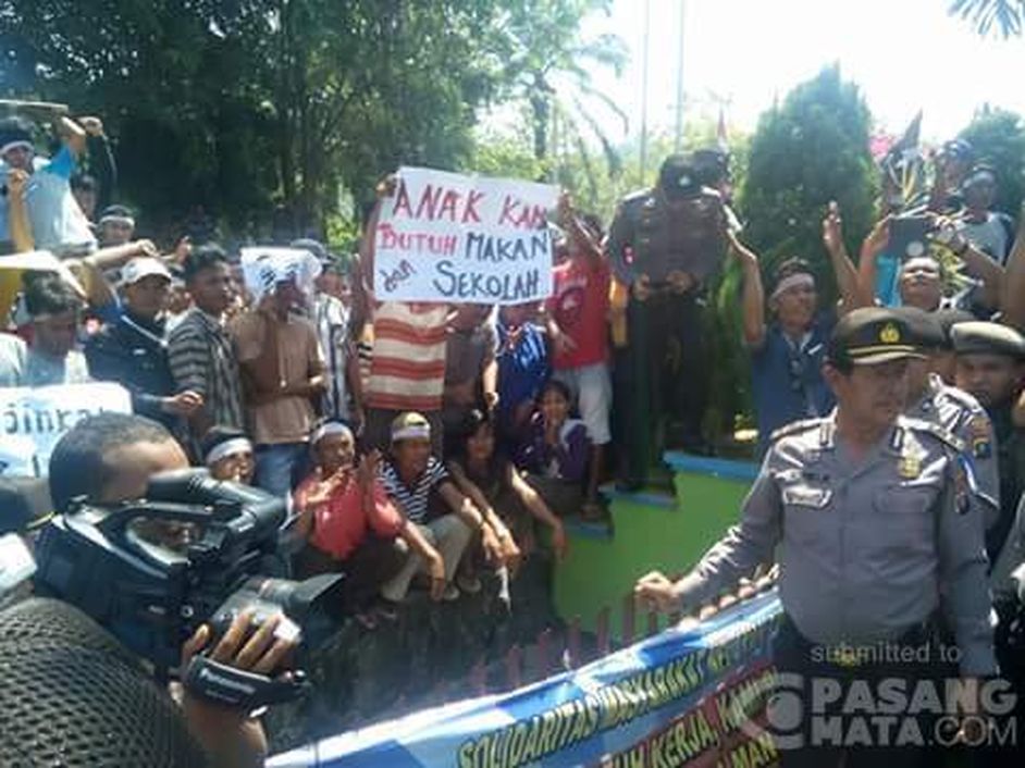 Para demonstran dijaga ketat oleh Aparat Kepolisian saat menyampaikan orasinya didepan Kantor Walikota Sibolga.