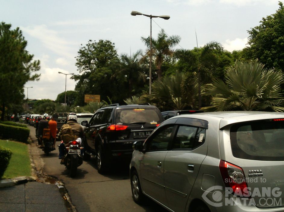Arus lalu lintas di jalan Gedung Hijau menuju Bintaro dan pasar Jumat tampak padat tersendat