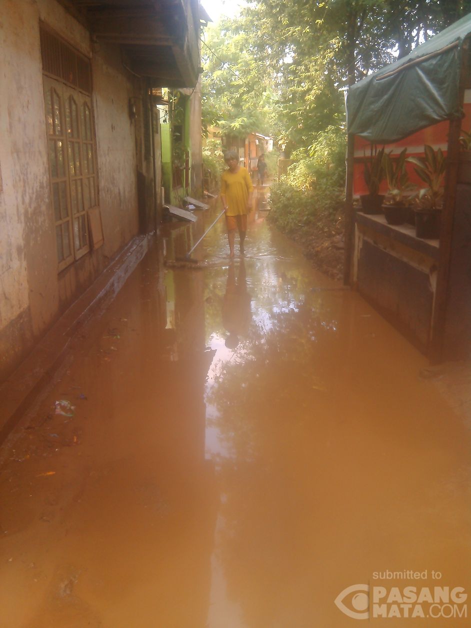 Suasana terkini banjir di Kp Arus RW 2 Kec. Kramat Jati masih tergenang pkl 16:34