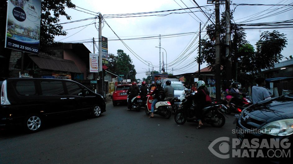 Arus lalu lintas Raya Bina Marga Ceger Cipayung mulai padat oleh kendaraan.