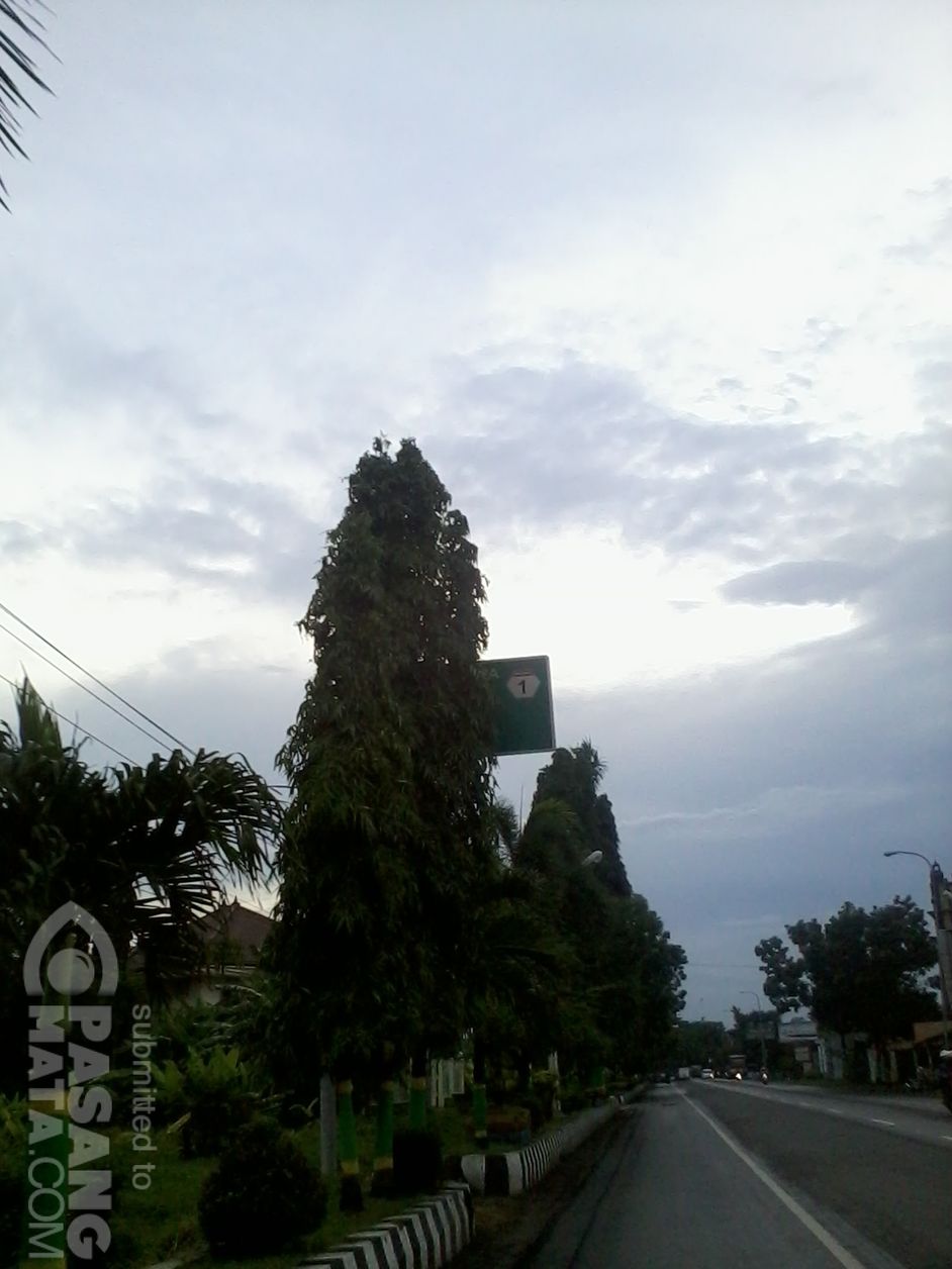 Rambu penunjuk arah di pantura Pati Juwana ini terhalang pohon sehingga tidak terlihat pengguna jalan.