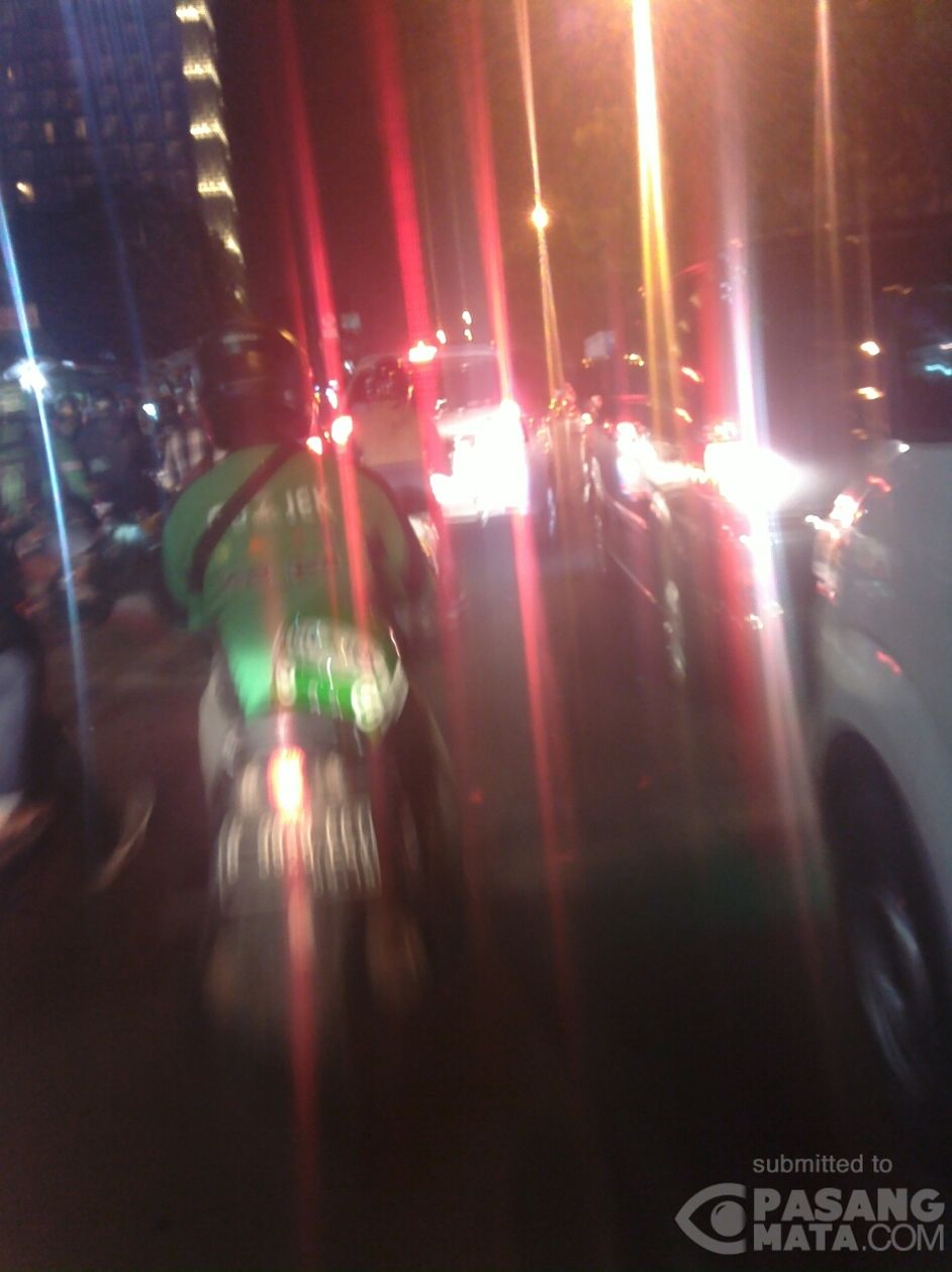 Arus lalu lintas di jalan Margonda Raya malam ini masih padat merayap karena banyak taksi dan angkot ngetem di Margo City Depok.