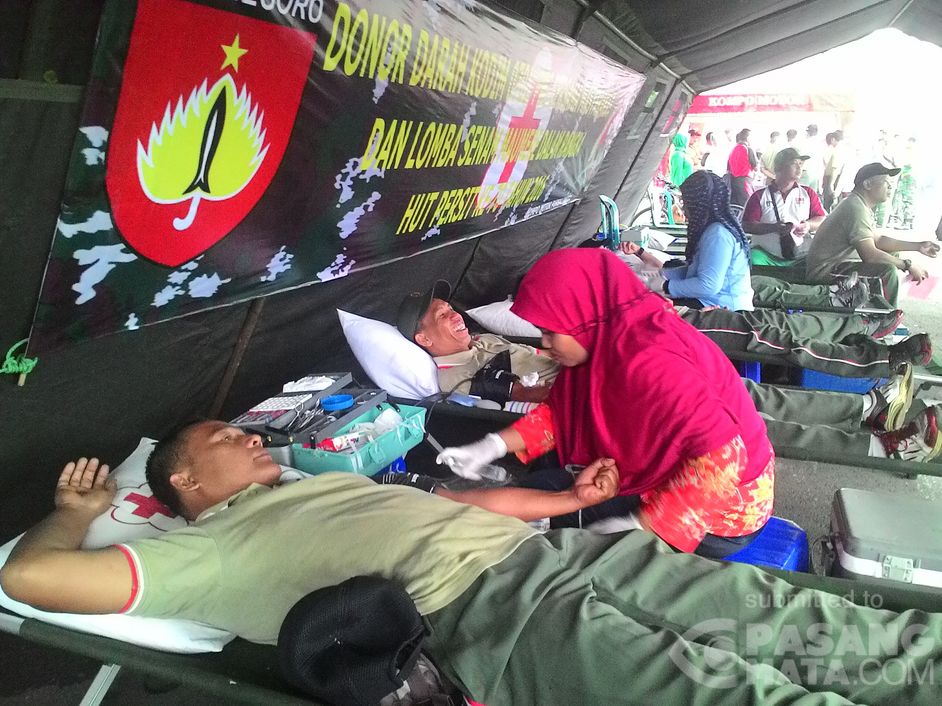 Anggota TNI dan masyarakat #Purbalingga, Minggu pagi ini (6/3) sumbangkan darah dalam rangka HUT Persit Kartika Chandra Kirana.