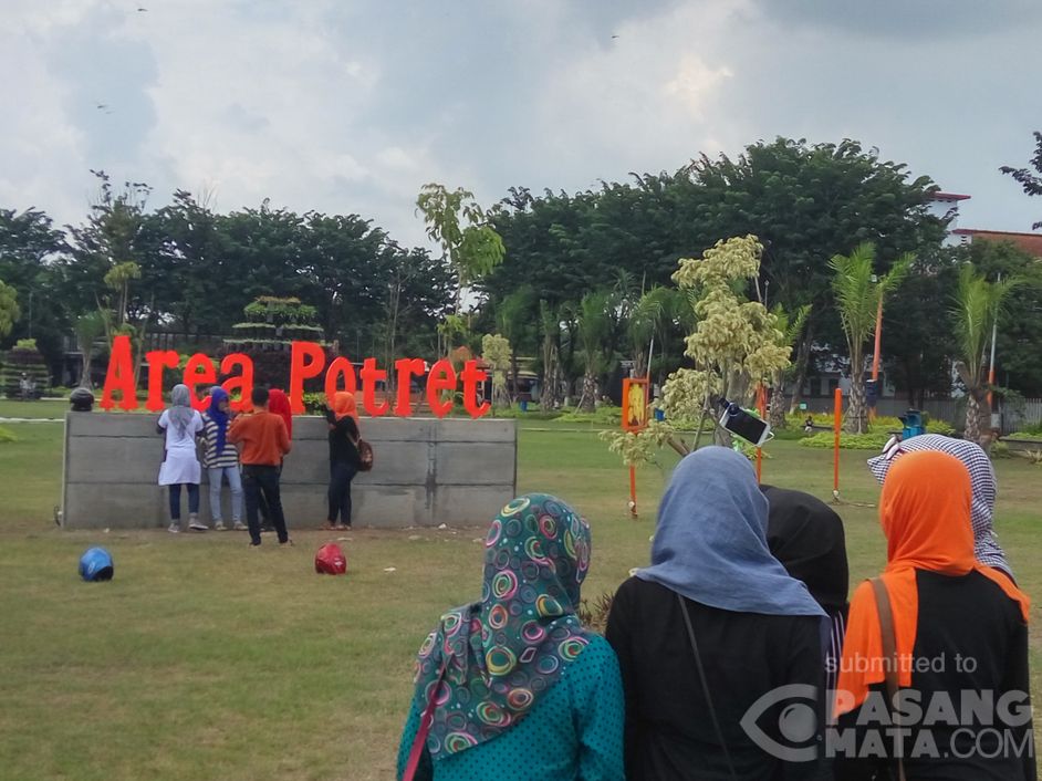 Area potret di Alun-alun kota Mojokerto menjadi jujugan foto selfie bagi pengunjung. maklum saja fasilitas umum area potret baru saja dibangun.