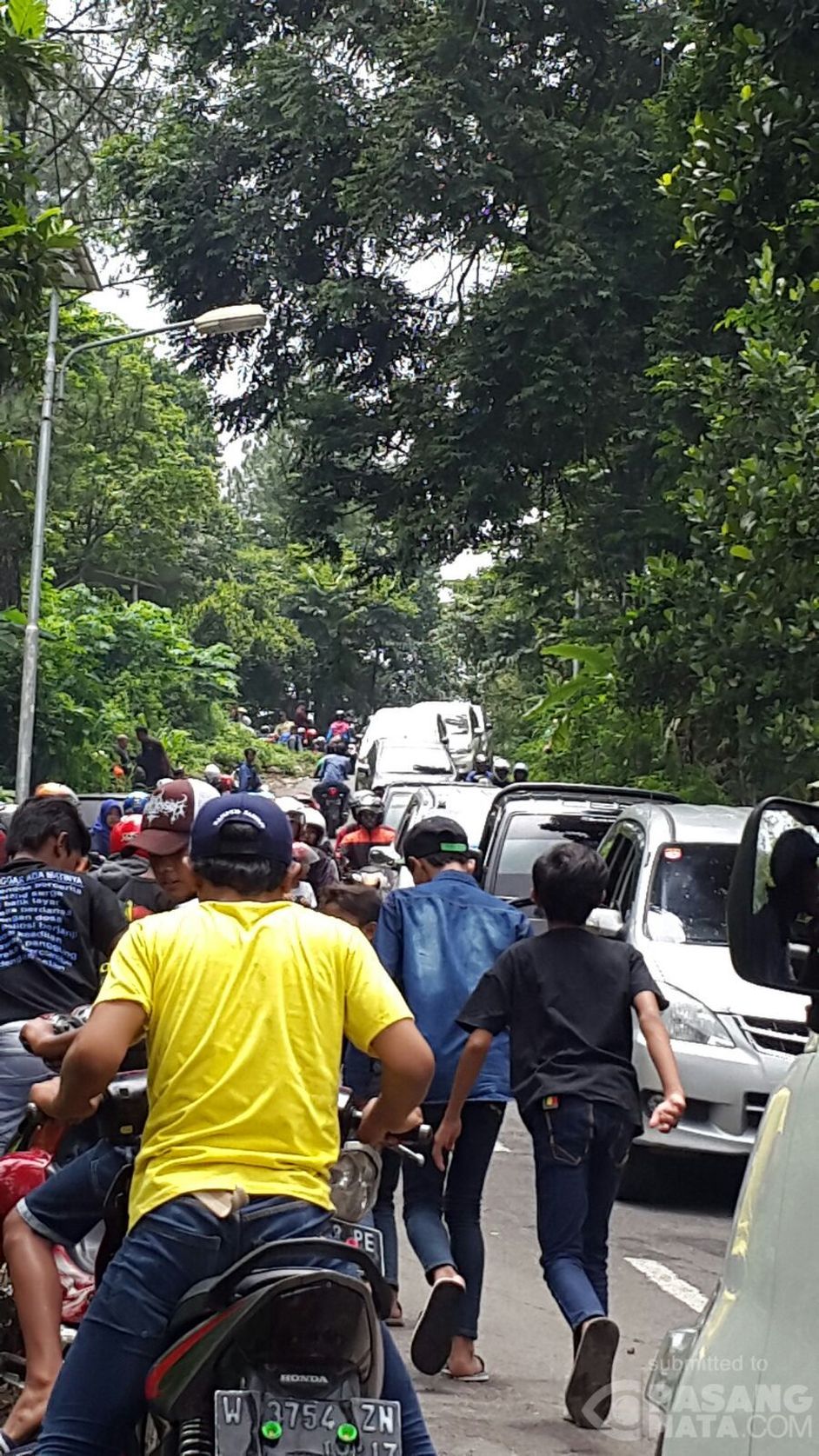 Siang ini terpantau kemacetan di jalur Wana Wisata Pacet Mojokerto.