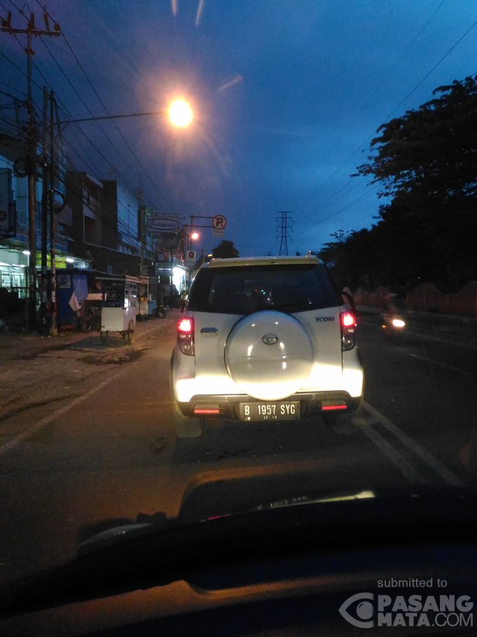 kondisi lalu lintas sepanjang jalan Nusantara Depok, depan Pasar Depok Jaya, terpantau padat merayap.