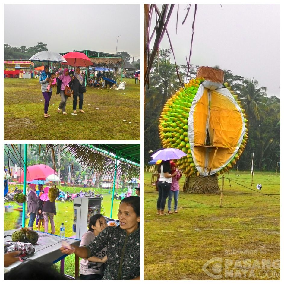 Meski hujan mengguyur festifal durian di Candimulyo, Magelang berlangsung sukses, pengunjung terus berdatangan meski hujan sepanjang hari.