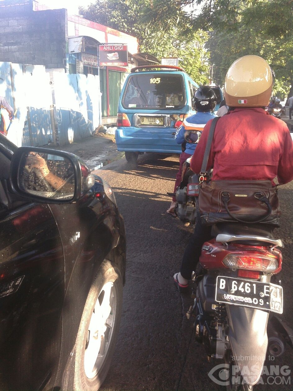 Perempatan Tugu Tanah Baru Depok Tampak Padat