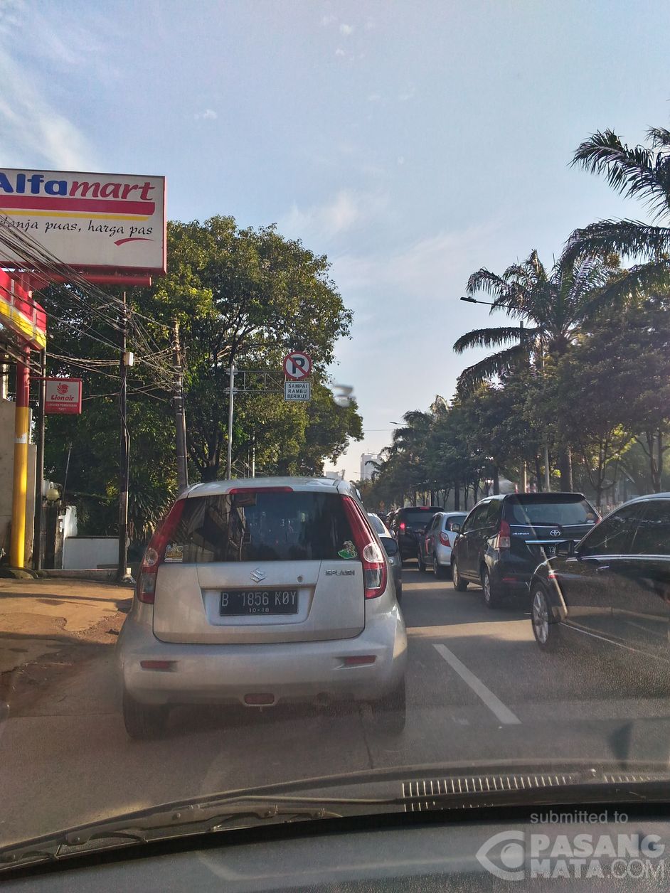 kondisi lalu lintas dari arah Warung Jati Barat menuju Pejaten, terpantau padat merayap dan cuacanya cerah.