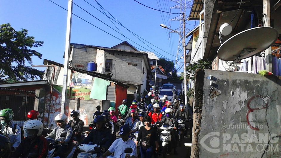 Kemacetan setiap pagi, khususnya hari kerja di Jl. Olahraga 1, Cililitan, Jakarta timur, depan RA Al Falah. Pengendara motor tak tertib, menggunakan lajur kiri dan kanan
