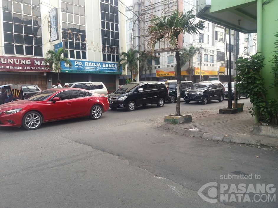 Lalin di jl Pandu arah Sisingamangaraja Medan terpantau padat merayap.