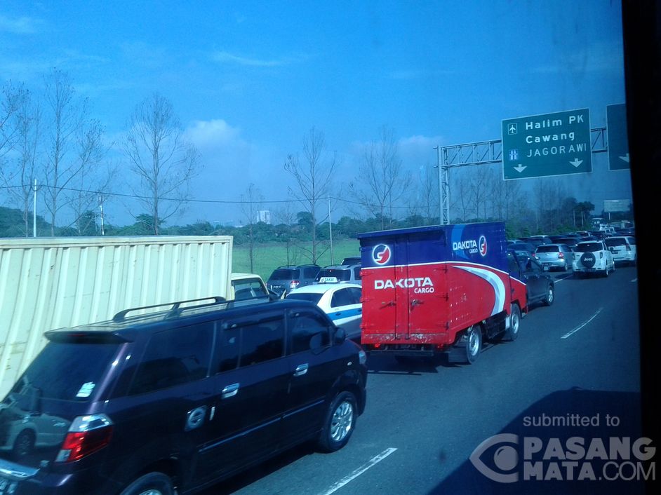 arus lalu lintas exit halim cawang pagi ini mengular cukup panjang.