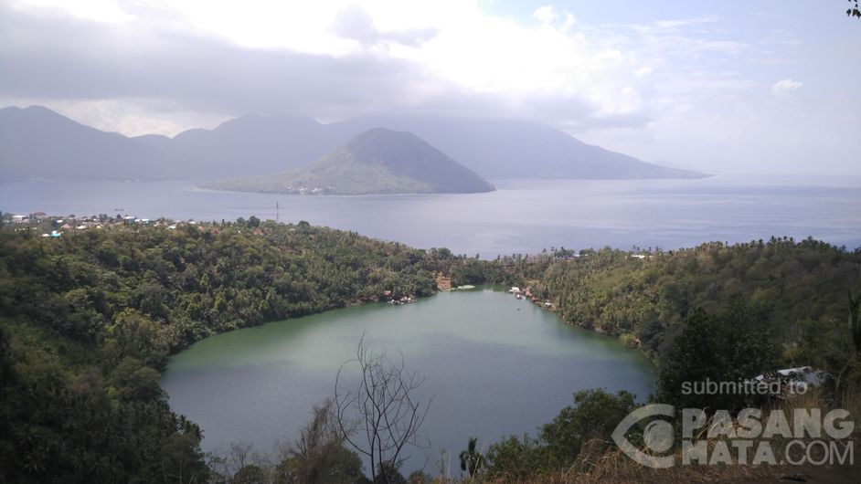 Danau Ngade. Danau di Ternate yang berseberangan dengan pulau Maitara dan Tidore. Keren! Danau Ngade yang air payau tidak tercampur sama sekali dengan air laut di seberangnya.
