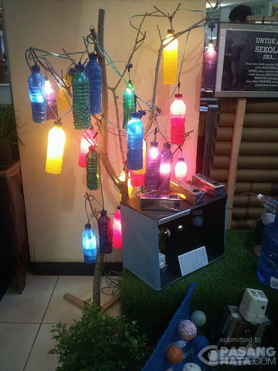 Lampu Lampion dari barang bekas (botol minuman plastik bekas) karya siswa sekolahan Palembang ikut ramaikan Sumeks Edufair 2016