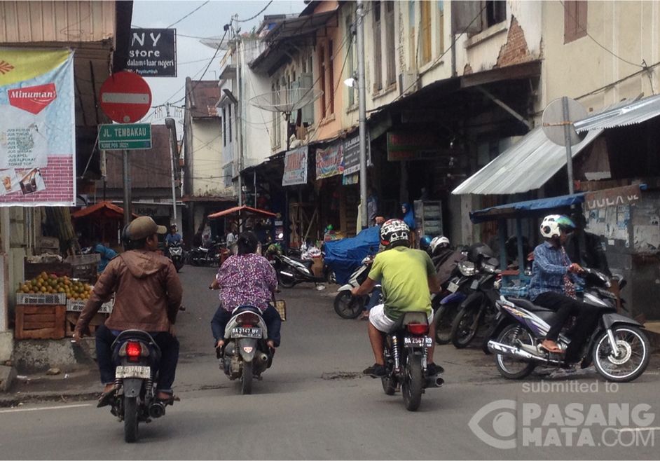 Sudahlah tidak pakai helm, pengendara sepeda motor ini juga melanggar rambu forbidden di Jalan Ahmad Yani, Payakumbuh, Sumatra Barat