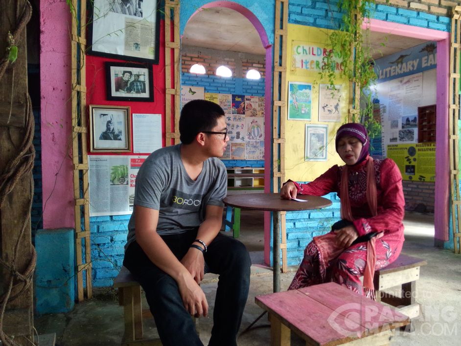 Wartawan detikcom sedang wawancara dengan Ibu Muslimah, Guru SD Belitung yang mengajar anak-anak Laskar Pelangi