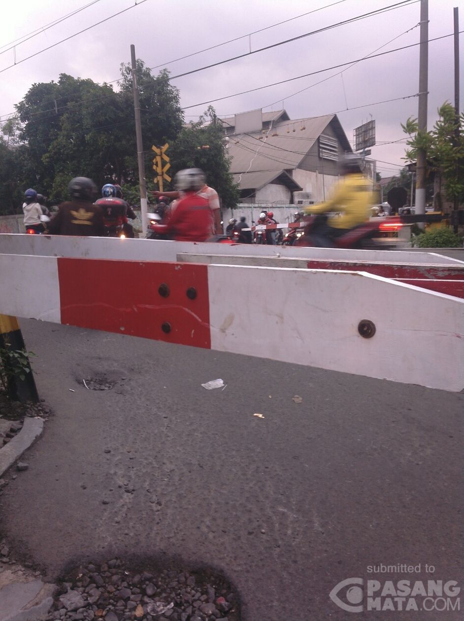 Penampakan motor-motor yang nekat terobos palang kereta yang sudah tertutup di perlintasan KA Pasar Minggu