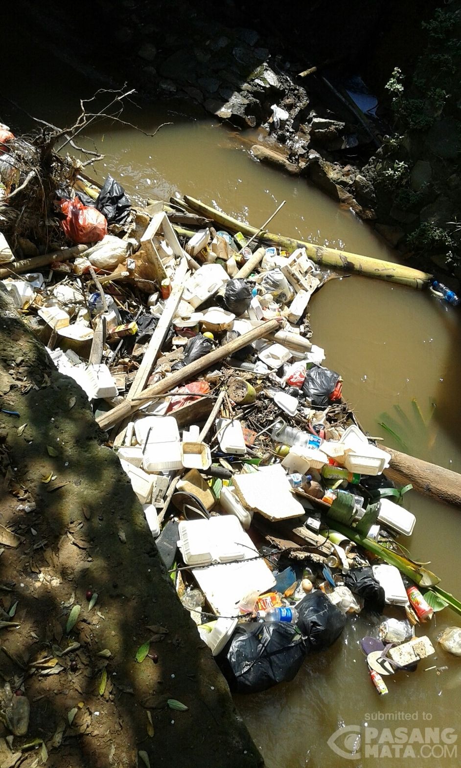 Sampah Menumpuk di Kali Jalan Raya Benda Jatiasih
