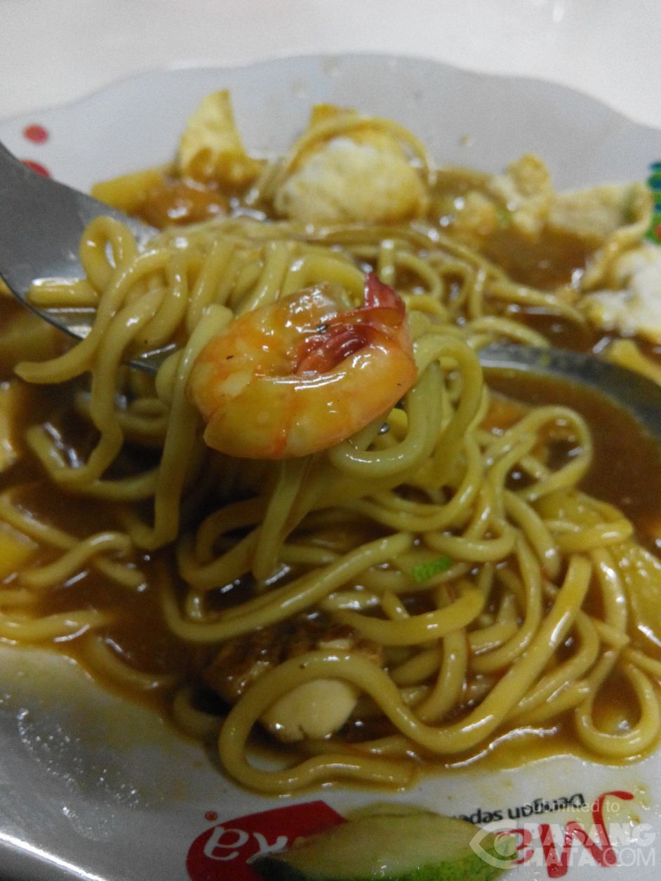 para peserta Laskar Gerhana Detikcom sedang makan malam di Belitung. Yaitu mie Atep khas Belitung.