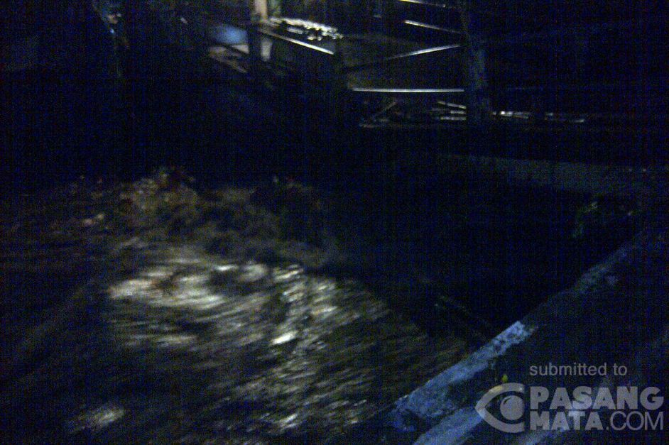 Kali malaka meluap ,jembatan jalan ke kampung bojong hampir teremdam