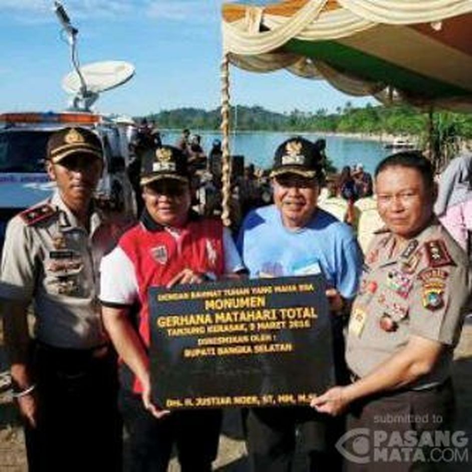 Bupati Bangka Selatan H. Justiar Noer menandatangani prasasti GMT di Pantai Tanjung Kerasak Kecamatan Tukak Sadai Bangka Selatan rabu (9/3). penandatangan dilakukan Bupati usai menyaksikan prosesi GMT bersama Wakil Bupati Bangka Selatan Riza Herdavid dan Kapolres Bangka Selatan AKBP Satria Rizkianov. Turut hadir juga alumni ITB lintas angkatan, termasuk mantan Dirjen Pariwsata Firmansyah.