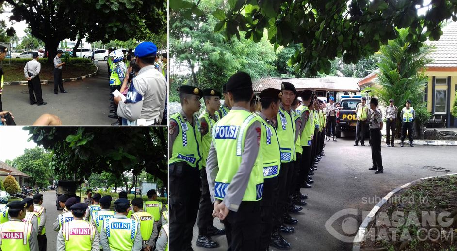Apel persiapan menyambut Presiden Jokowi di Halim, dipimpin oleh Kapolsek Makasar Kompol Bambang Wahyudi. @110316