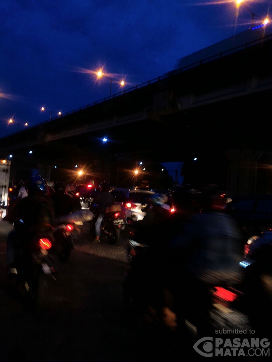 kemacetan di depan ITC Cempaka mas jam pulang kantor. pkl. 18.15